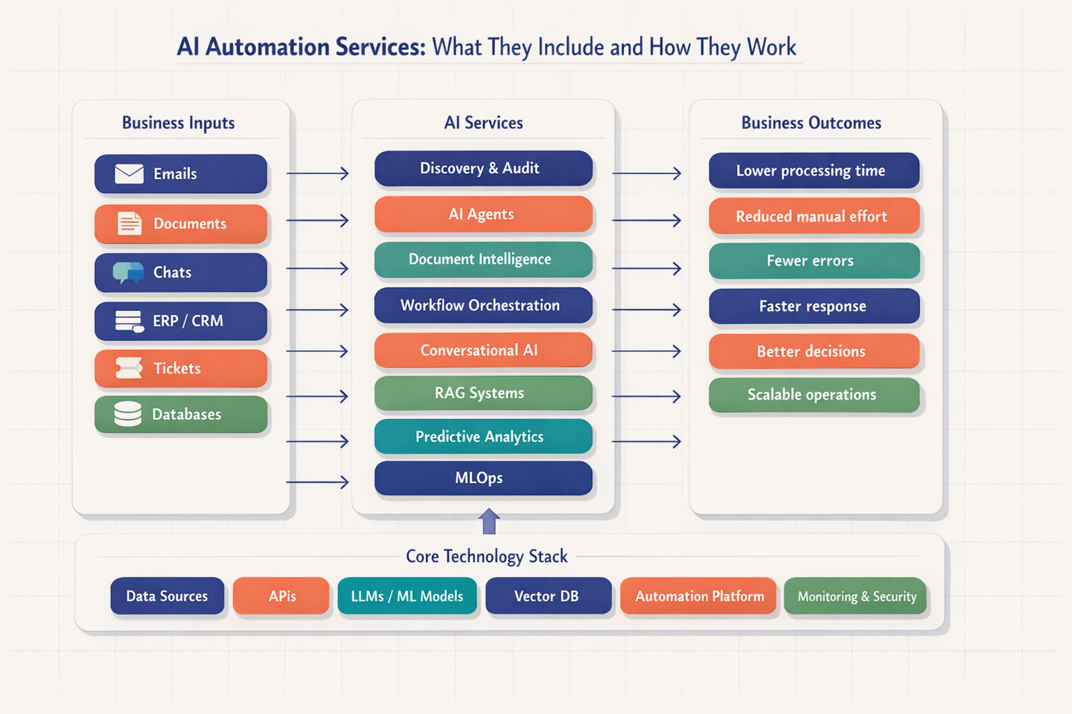 Explore developmentAI services that work in production. From GPT integration and chatbot development to workflow automation and custom AI agents—we build AI solutions for business. Business process automation, LLM integration, and AI implementation that delivers ROI.